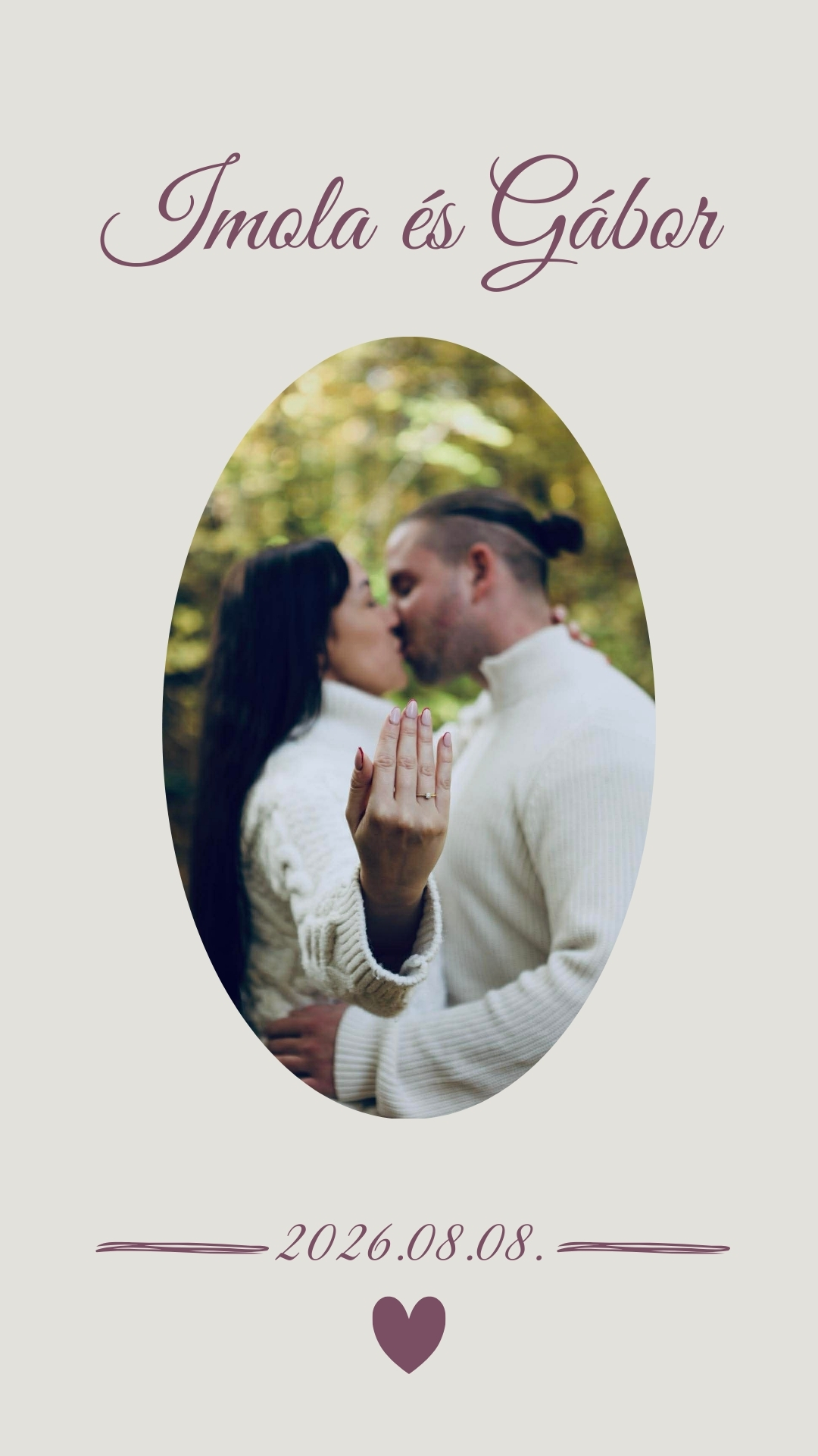 Várunk titeket 2026. augusztus 8-án, szombaton 17 órakor kezdődő esküvőnkre, majd az azt követő vacsorával egybekötött zenés mulatságra!